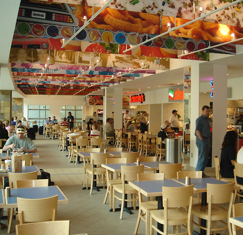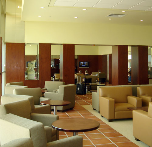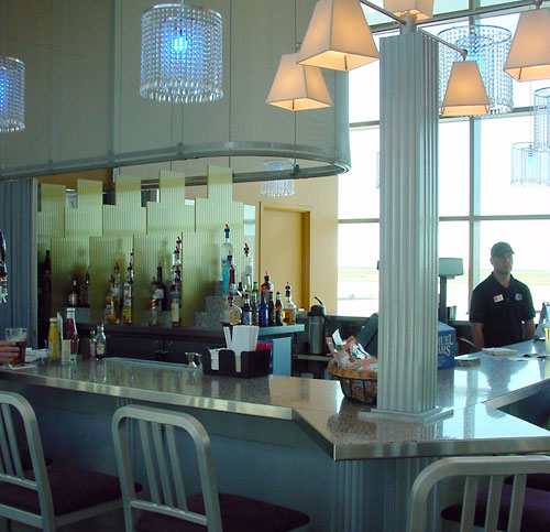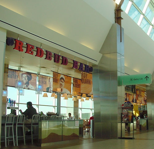 Route 66 Grille and RedBud Bar. A dining area of 120 seats overlooking the tarmac book ended by a 20-seat bar and a grilled to order and prepackaged sandwiches sales area. A Cinnamon take-out shop with breakfast coffee augments the food service. Project realized on time and on budget, two critical requirements.