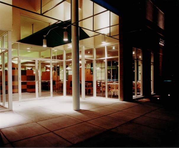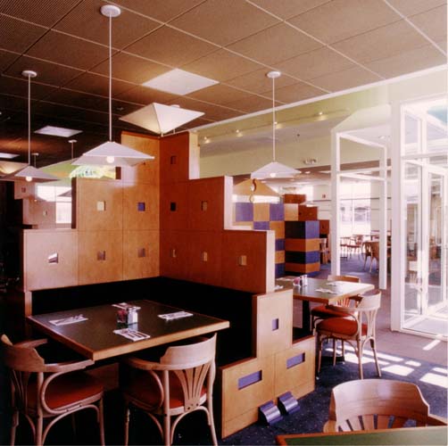 A simple structure with design focused on the entrance area, like a Middle Eastern caravansaries. The plan was arranged around bench-seats with groups of four tabletops that provide much of the visual texture, with walls covered in traditional etched and steel point 19th-century prints of fish. Frameless glass protection carefully arranged on the wall between thin wood trim complement the design.
